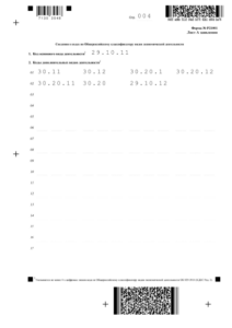 Подобрать нужные коды можно по справочнику ОКВЭД. Не обязательно указывать узкие ниши, то есть шестизначные коды. Можно писать целые группы, в которых не менее 4 цифр. На одном листе можно указать 68 кодов, при необходимости распечатайте два или больше листов А, заполните и пронумеруйте их.